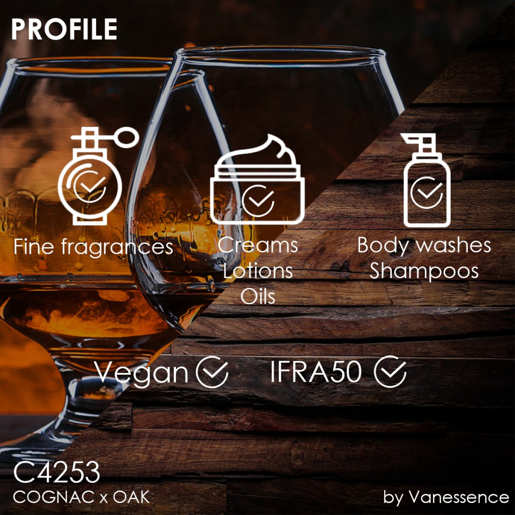 Slip into a deep state of relaxation with our latest experiment: COGNAC X OAK. This olfactory concept combines irresistible musky notes, cognac, oak, and sandalwood with hints of warmth and spice from cinnamon, praline and vanilla.