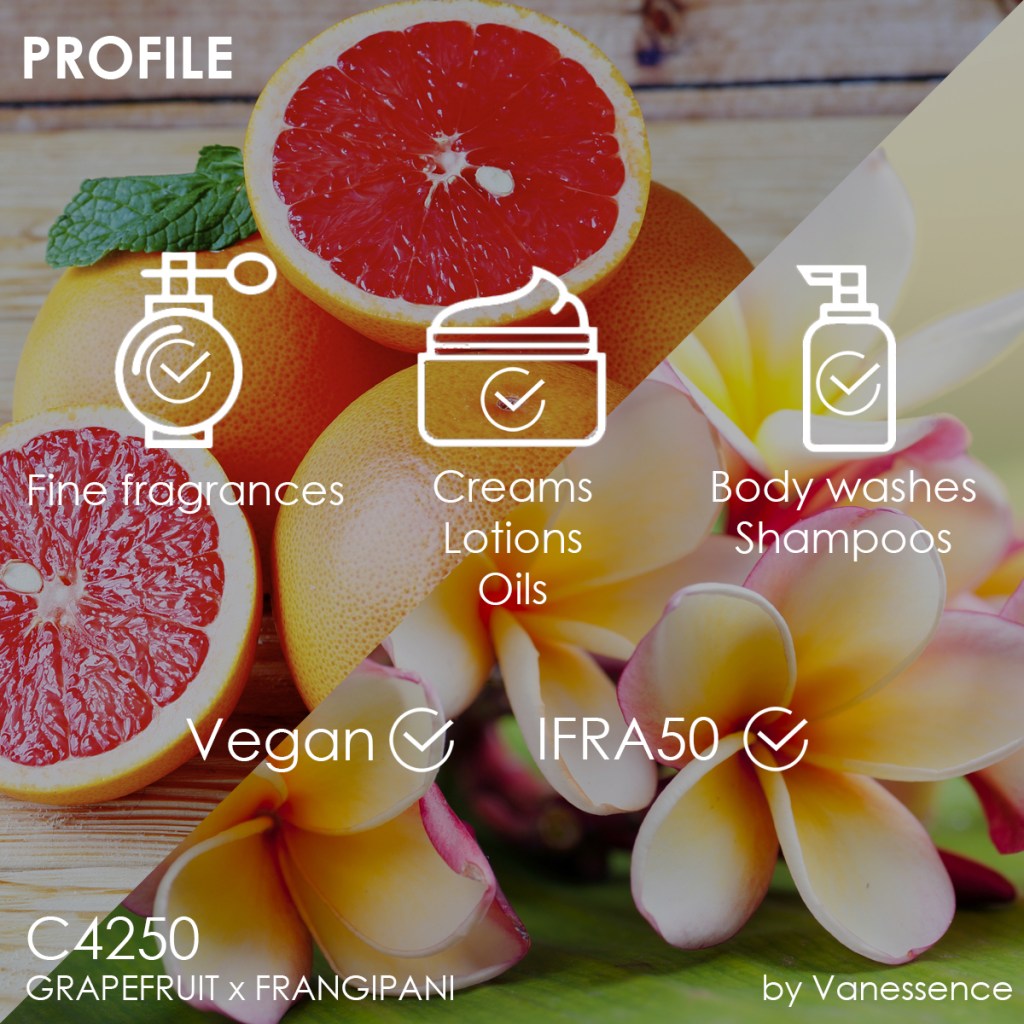 Awaken your senses with our latest fragrance: GRAPEFRUIT x FRANGIPANI. This delightful scent combines the brightness of citrus fruit with the sweet, subtle smell of beautiful blossoming flowers to create a full-body energizing experience.