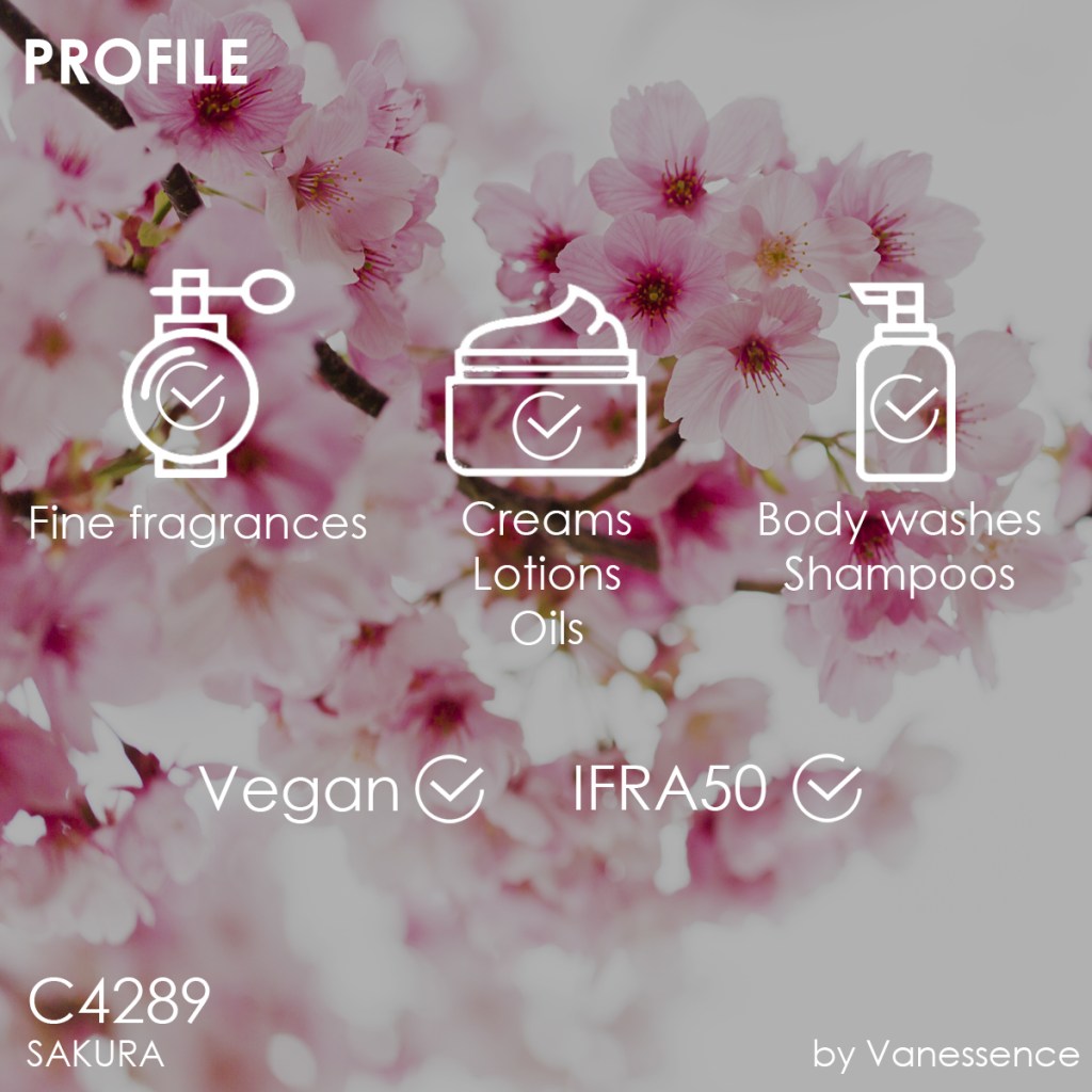 The subtle yet commanding aura this scent provides makes it an impeccable option for perfumes, skin & hair care, and body wash products. Unleash your feminine side and invigorate your senses with SAKURA.